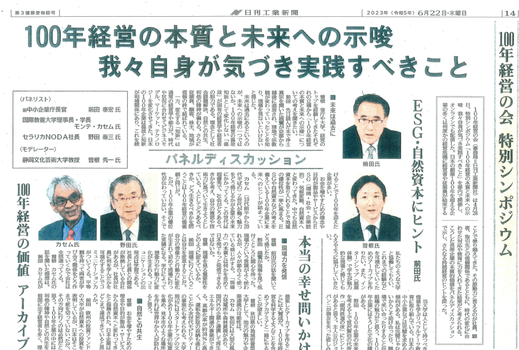 我公司CERARICA NODA 于 2022 年 8 月 24 日在《日刊工业新闻》的专题文章“向百年企业的理念学习”中进行了介绍。